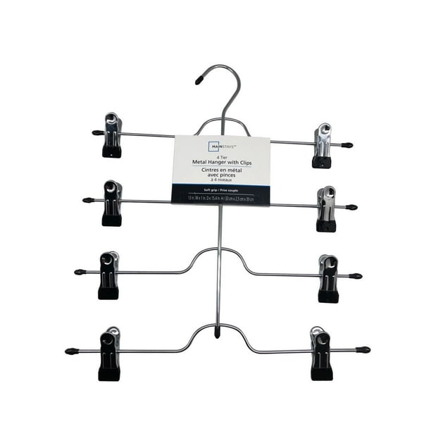 Mainstays, Multifunctional Metal Pants / Skirts Hangers with Adjustable Clips, black, 4 Tier Metal Hanger with Clips