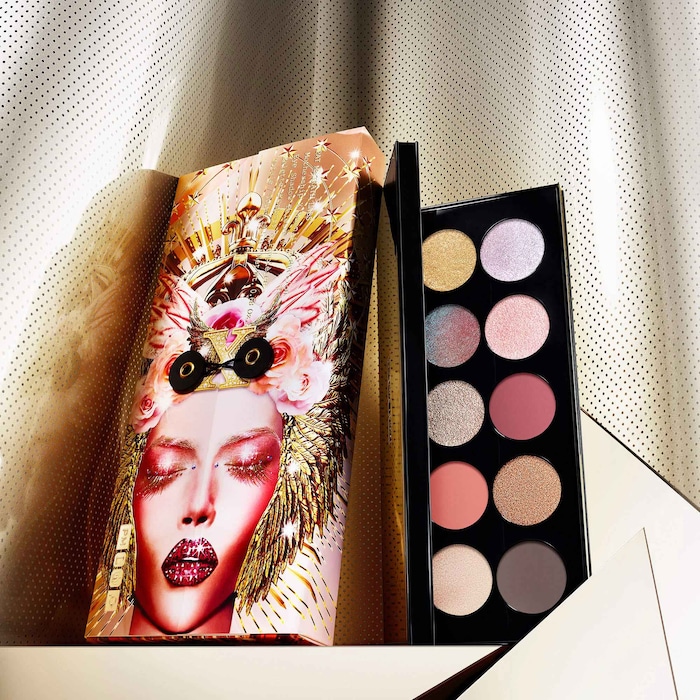 A palette with 10 starlit shadows presented in decadent colors and seductive finishes, ranging from velvet mattes and moonlit metallics to alluring astrals.